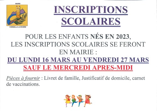 Vous souhaitez inscrire votre enfant à l’école maternelle de Corneilla de la Rivière.