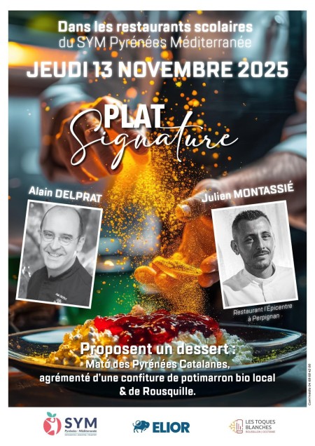 - Dans le cadre de sa mission d’éducation à l’alimentation et afin de promouvoir les produits du Roussillon régulièrement servis dans les assiettes de nos écoliers, le SYM Pyrénées-Méditerranée et son prestataire ELIOR ont créé le Plat Signature.